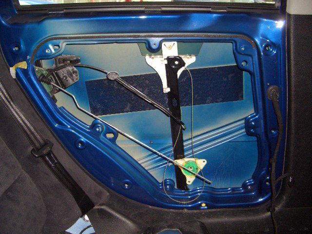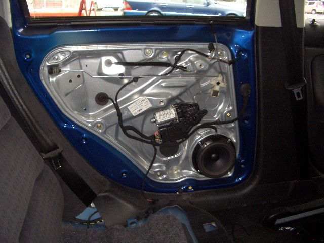今回はドアロックがロック状態になってしまいドアが開かなくなってしまったパサートのドアロック交換です。 まずはシートを外しドアが閉まっている状態で内張りを外していきます。 内張りを外すとアルミのパネルが付いているのでパネルも外します。