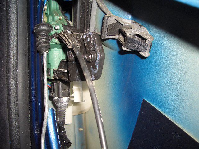 これでドアロック本体が見えます。 配線、ロッド、ワイヤーなどを外しドアロックを外していきたいのですがドアが開かないととドアロックを取り付けているボルトが外れないのでドア内部からロックを外したいのですがロック部分もアクチュエーターなどに遮られていて解除できません。 オーナー様に最悪ロック部分を壊してもいいと了解を得ているので壊します。