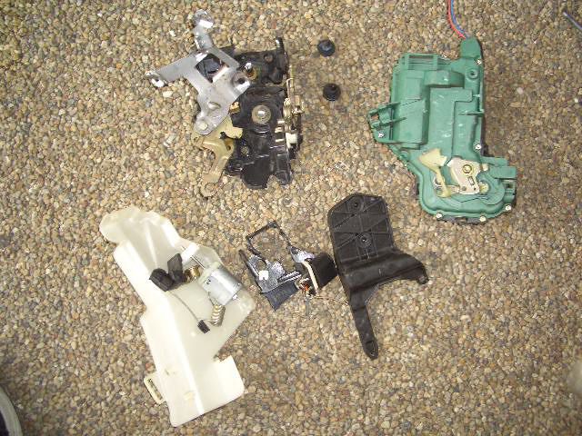 ベルトサンダーやエアソーなどを使い何とか外れました。 壊してもいいという作業なので気は楽なのですが、壊してもいい物に限ってなかなか壊れないのでたいへんです。 画像のとおりバラバラに壊してしまったのでロックが壊れた原因はわかりません。 新しいドアロックに交換して戻せば完成です。 室内から何とかできなければ外側からドアを切ってドアロックを解除する予定だったみたいなので時間、費用などを考えればかなり早く、安く出来たと思います。
