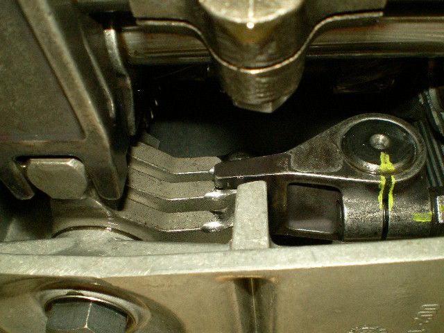 シールを交換した後、シフトフォークの点検・微調整をしてシフトロッドを組付けます。