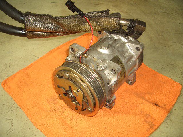 コンプレッサーは今回はリビルト品で交換します。 左の画像がリビルト品です。