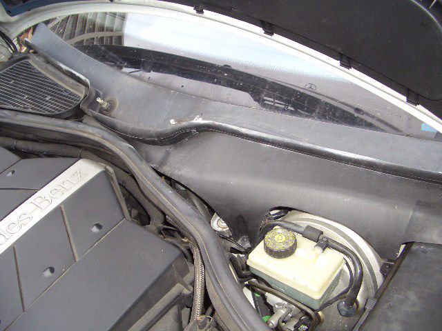 今回はメルセデスベンツS500のヒーターバルブコアの交換になります。 暖房をMAXにしても冷たい風しか出ないということで入庫されました。 この車輌のヒーターバルブコアはブレーキマスターの横のバルクヘッドに隠れているので、ワイパー、カバーなどを外していきます。