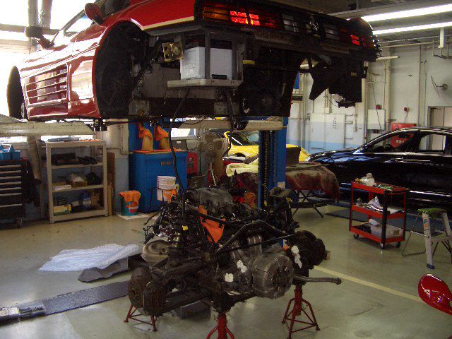 各点検後、エンジンミッションをボディから切り離します。