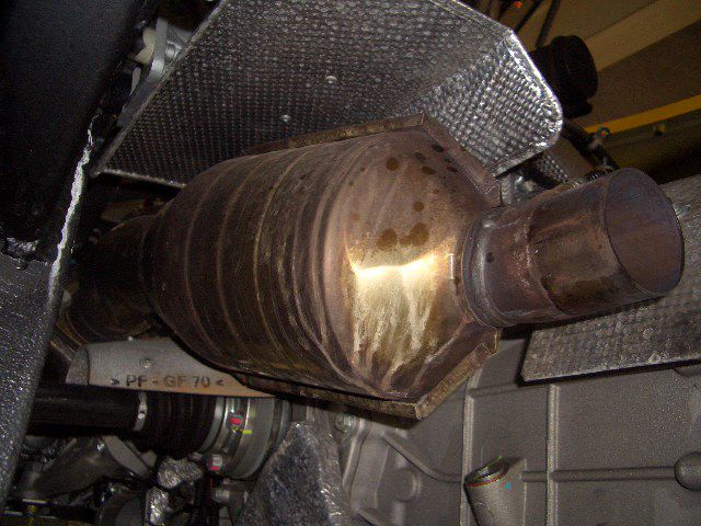 Rマフラー&テールパイプ廻りを取り外して、マフラー触媒を丸見えにします。