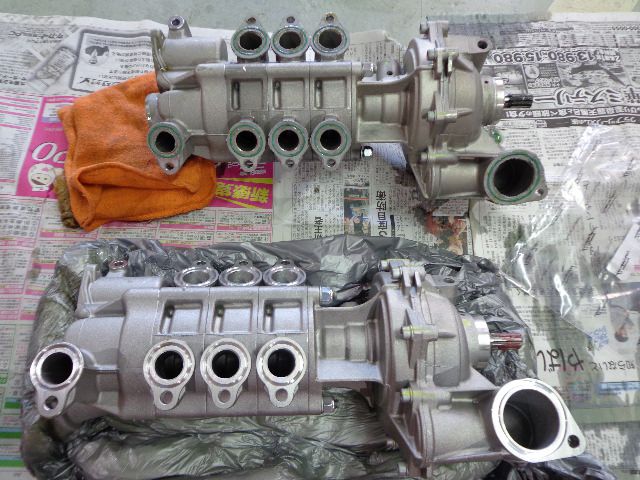 ウオーターポンプはオイルポンプと同軸で回転しており、両方とも繋がっていた為、ASSY交換になります。