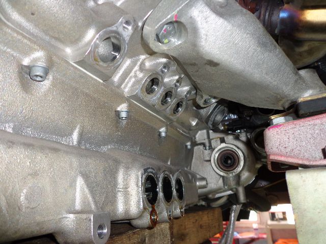 外したウオーターオイルポンプとエンジンルーム