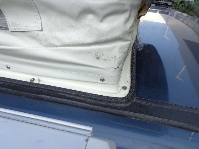 キャンピングルーフを装着するこの車輌はルーフとの隙間をゴムのパッキンで塞いでいます。