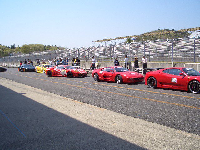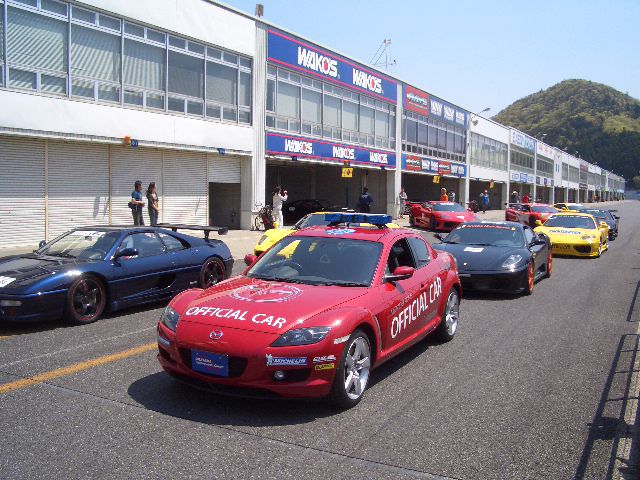予選スタートに備えて、ピットロードに車がピットから出てきました。