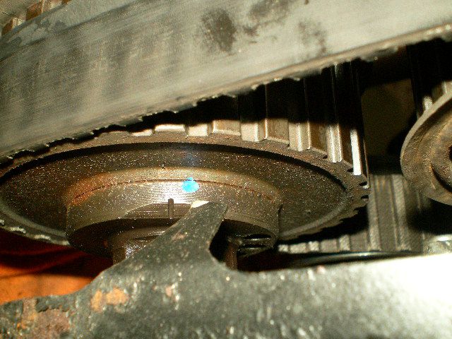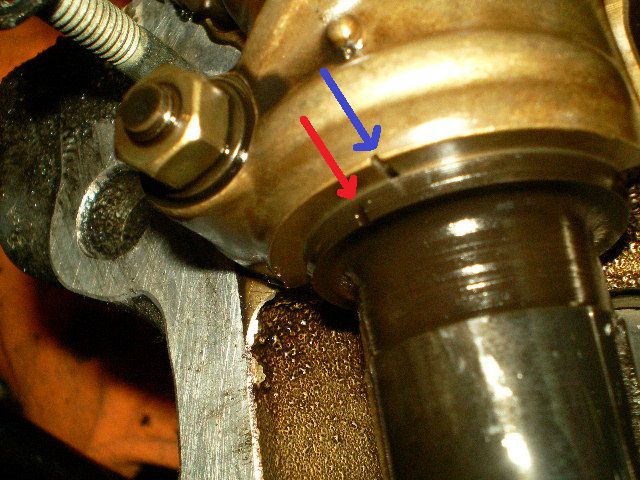 F側バンクのバルブタイミングがIN/EXカム共、合いマークがズレちゃっています。