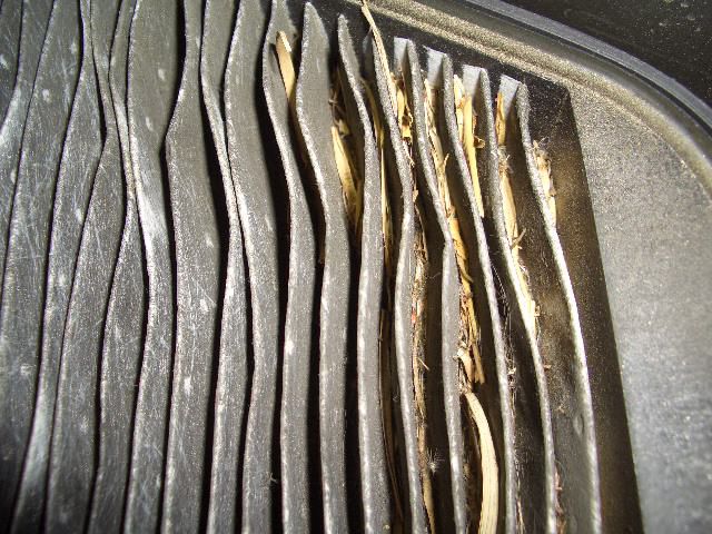 これでは空気の通りが悪くなってA/Cの風量が弱くなるはずです。