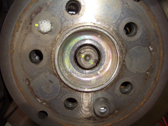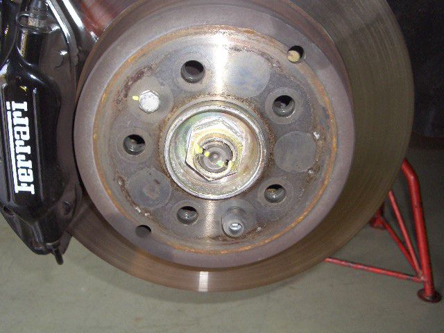 まずはタイヤを外して、ドライブシャフトを止めているハブのナットと内側のフランジ側のボルトを外していきます。