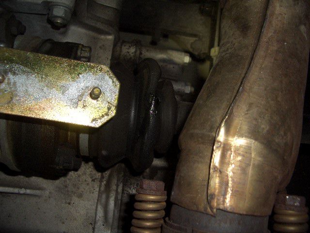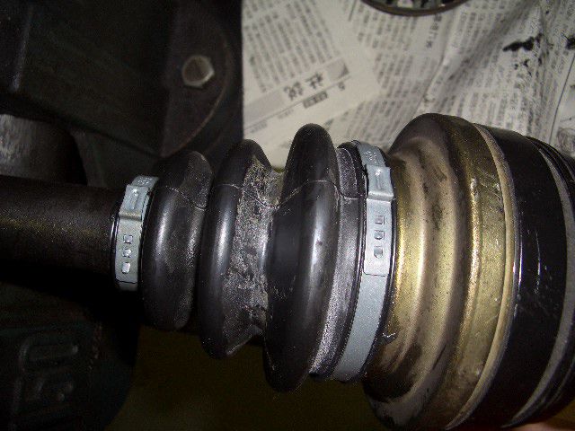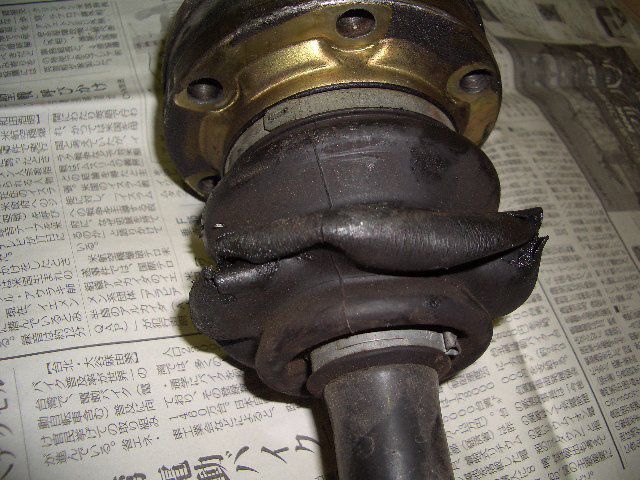 さっそくドライブシャフトブーツの遮熱板を外してみると、ブーツが破れているのが確認出来ました。
