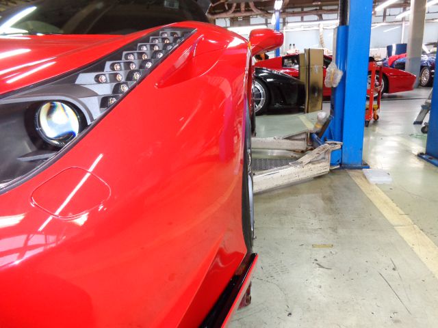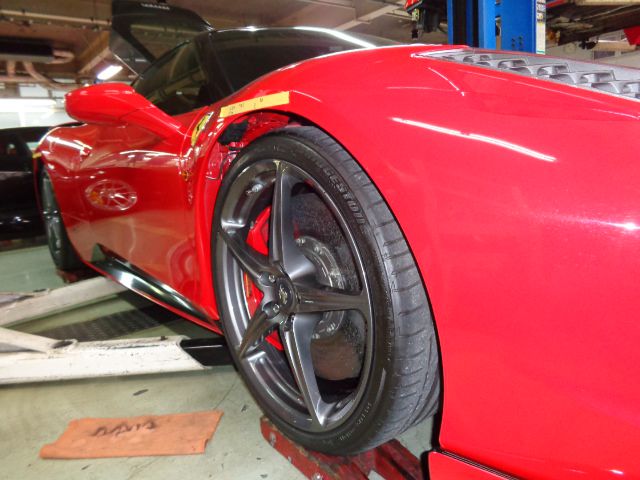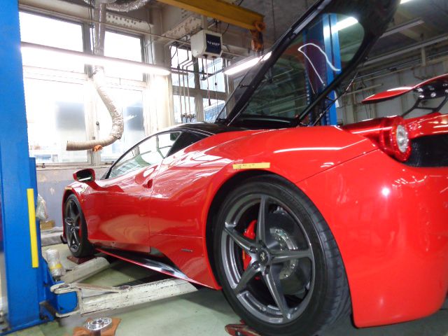 458イタリアのバネレート変更、車高調整、アライメント測定を始めます。
