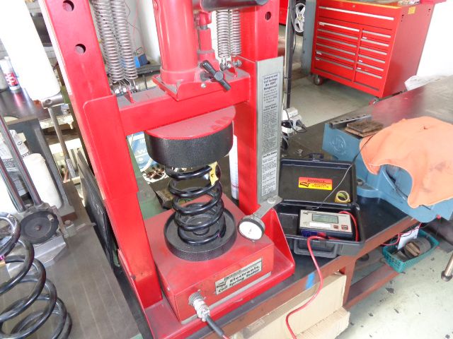 アームレバー比や純正バネのID 自由長 レートなど測定します。