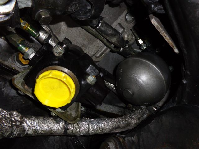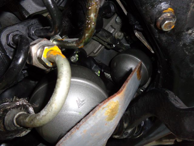 エンジンの横の隙間にひっそりと2つアキュームレーターがあります。