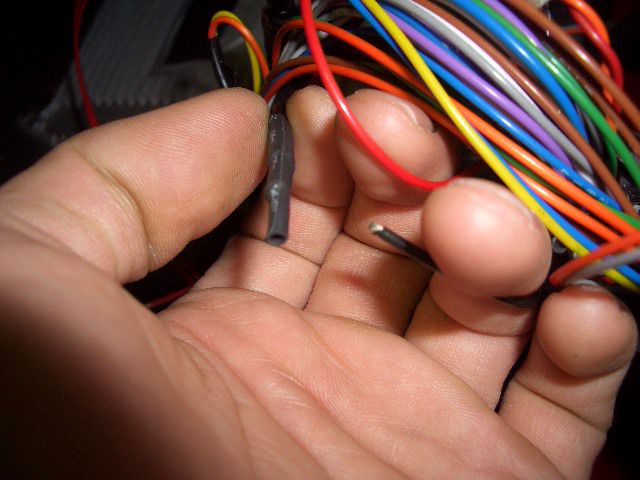 片側は配線が切れてそのままになっている状態で、もう片方は一見配線の先を収縮チューブで塞いだ様な感じに見えるのですが、元々は繋がっていた配線の様です。