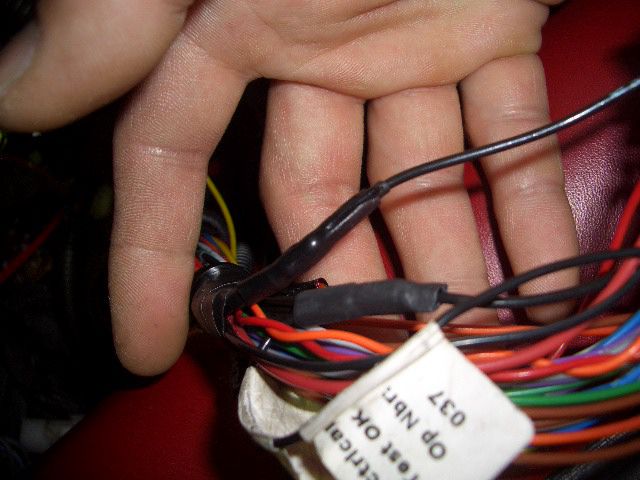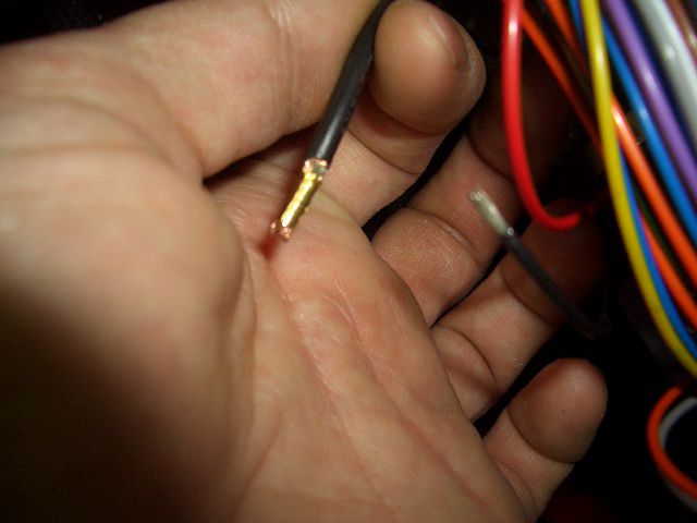 収縮チューブを取り除いてみると、配線同士を端子を潰して圧着して止めているタイプの繋ぎ方になっていて、その部分で配線が切れてしまっていたようです。
