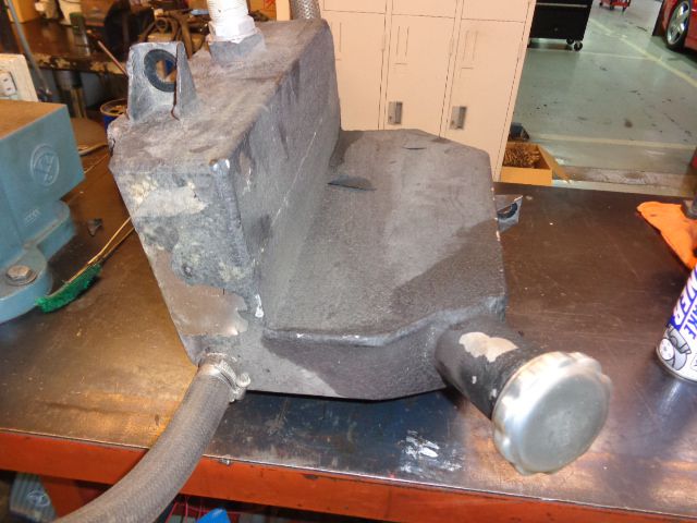 リザーブタンクも内部の錆取りを施工した上で外部の錆取り塗装を施工します。