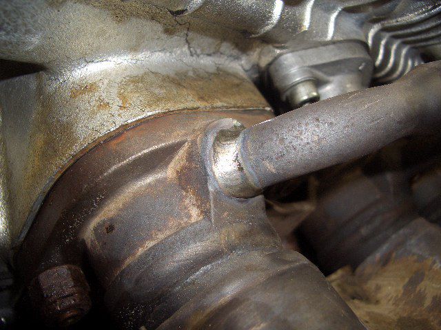 排気漏れしている箇所は左エキマニの二次空気のパイプの付け根にクラックが入ってます。
