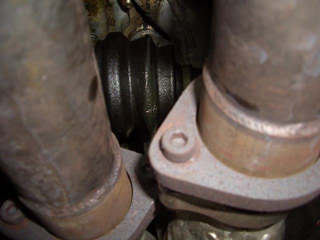 写真では判りにくいのですが、飛んだグリスがエキマニに付いて焼けてしまっています。