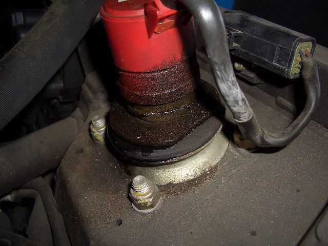 アッパーブラケットの回りが漏れたオイルでベタベタです。