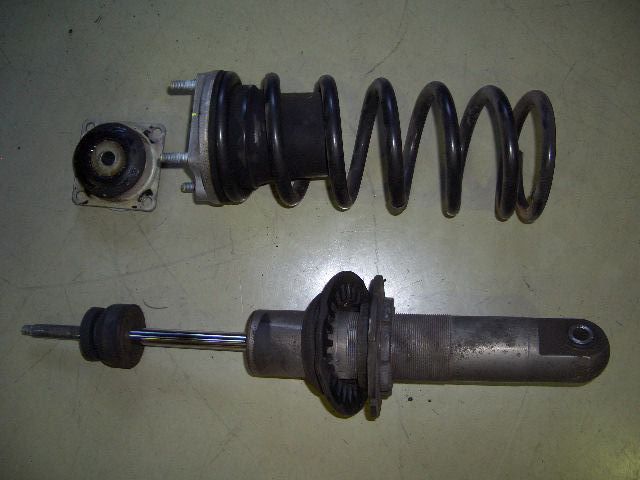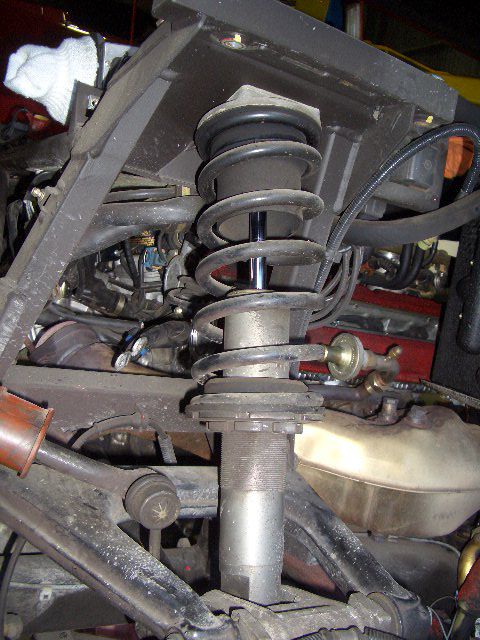 オーバーホールされたアブソーバーにコイルスプリングを組み付けて