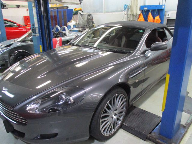 アストンマーチンDB-9車検整備で入庫いただきました。