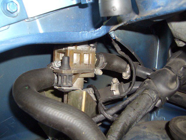 ヒーターバルブはかなり奥まった場所に付いてますが、エアクリーナーケースを外せば良く見えます。