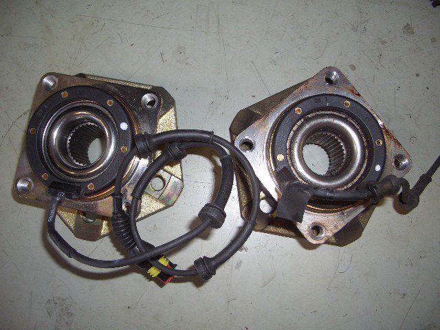 写真はいきなり外れた状態なのですが、左が新品で、右が取り外したハブベアリングです。