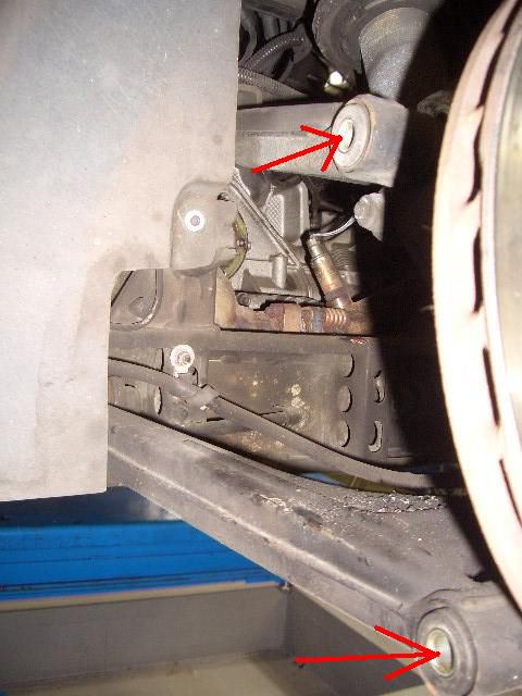 後は、アッパーアーム、ロアアームのボルトを抜いて、