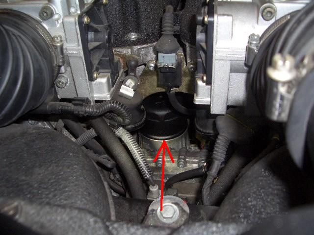 次に、挑戦的な位置にある、オイルエレメントを外します。