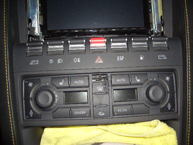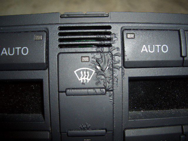 漏れた液が下に落ちてエアコンのスイッチパネルが酷い事に成っちゃっています。